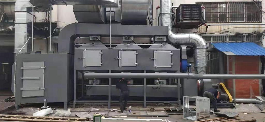 活性炭吸附濃縮催化燃燒(RCO)系統(tǒng)根據(jù)吸附(效率高)和催化燃燒(節(jié)能)兩個(gè)基本原理設(shè)計(jì),采用雙氣路連續(xù)工作,一個(gè)催化燃燒室,兩個(gè)吸附床交替使用。先將有機(jī)廢氣用活性炭吸附,當(dāng)快達(dá)到飽和時(shí)停止吸附,然后用熱氣流將有機(jī)物從活性炭上脫附下來(lái)使活性炭重生;脫附下來(lái)的有機(jī)物已濃縮(濃度較原來(lái)提高幾十倍)并送往催化燃燒室催化燃燒成二氧化碳及水蒸汽排出。當(dāng)有機(jī)廢氣的濃度達(dá)到2000mg/m³以上時(shí),有機(jī)廢氣在催化床可維持自燃,不用外加熱。燃燒后的尾氣一部分排入大氣,大部分被送往吸附床,用于活性炭重生。這樣可滿足燃燒和吸附所需的熱能,達(dá)到節(jié)能的目的。重生后的可進(jìn)入下次吸附;在脫附時(shí),凈化操作可用另一個(gè)吸附床進(jìn)行,既適合于連續(xù)操作,也適合于間續(xù)操作。